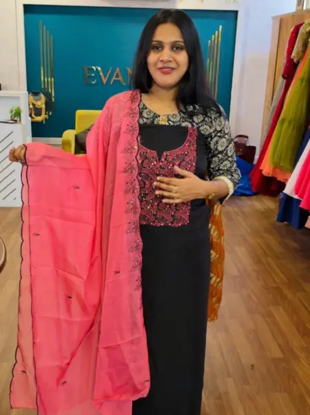 - Floral thread work on top, sequence work in neck portion