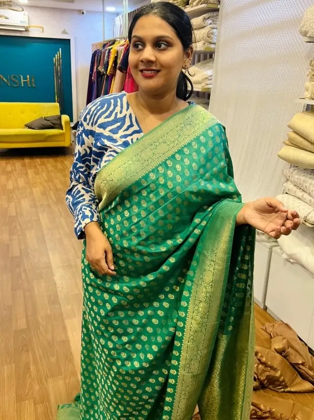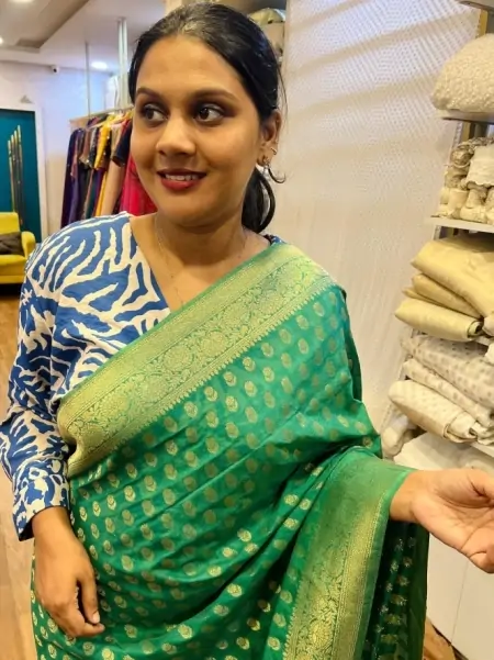- Georgette banarasi traditional saree with unstitched blouse